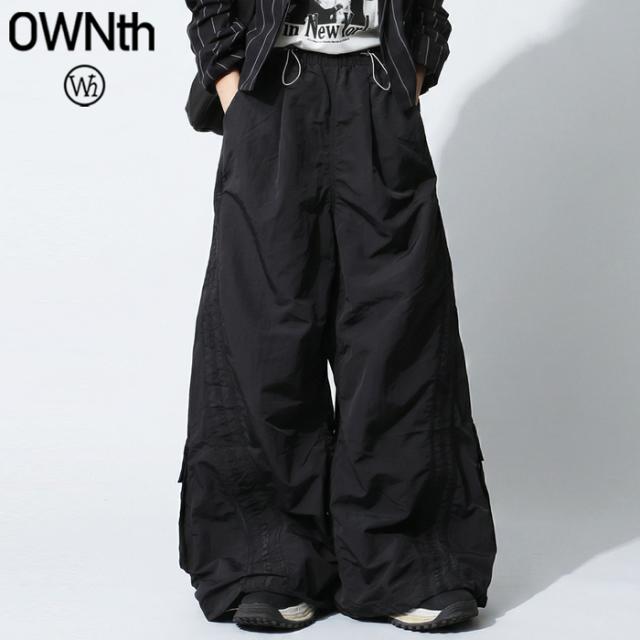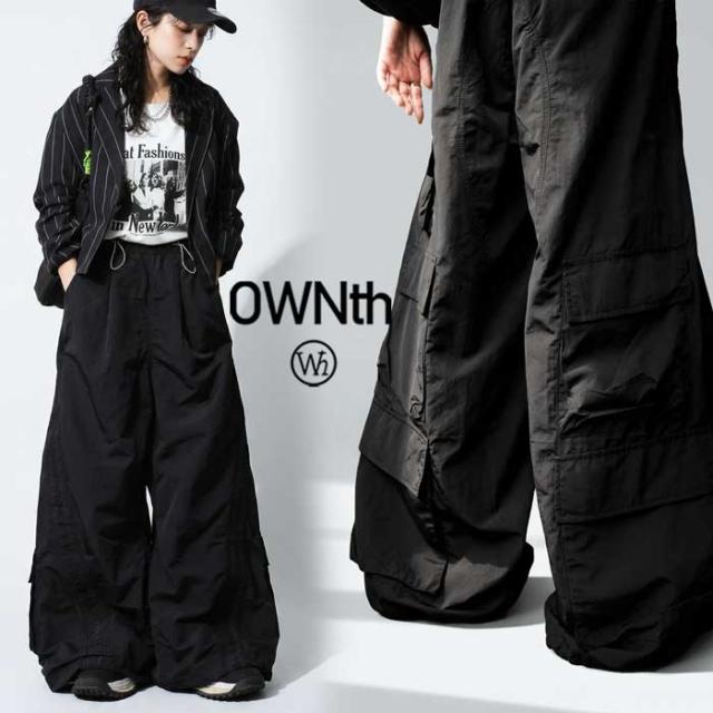 owt-6070 カーブパンツ バレルレッグ ワイドシルエット イージーパンツ リラックス 体型カバー ラフ ユニセックス カジュアル モード ストリート 着回し ウエストゴム サイズ調整可