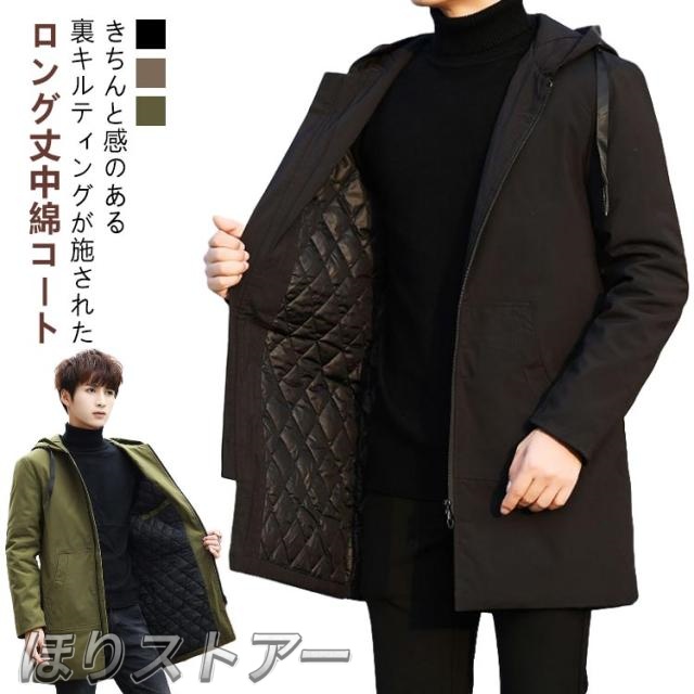 トレンチコート モッズコート アウター コート 中綿入り フード付き ミリタリーコート メンズ ジップアップ ミドル丈 M?6XL ロングコート 秋冬 厚手 大きいサイズ 無地 冬服 冬物 中綿コート カジュアルジャケット 黒 コーヒー カーキ