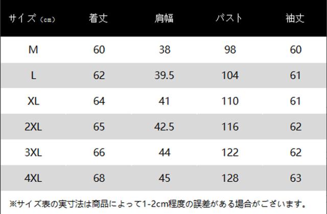 | サイズ | M L XL 2XL 3XL 4XL |