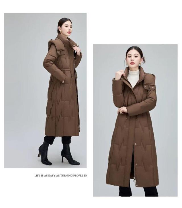 ウエストシェイプ ダウンジャケット 着ぶくれにくい ロングコート レディース ベンチコート ロング丈 ダウンコート フード付き ハイネック ジップアップ ダウンコート 防風 冬 暖かい アウター フェミニン おしゃれ 大人 きれいめ