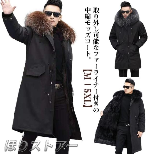 ロングコート メンズ 厚手 暖かい コート ファーコート 中綿コート 冬 裏起毛 裏ボア モッズコート モッズコート 秋 冬 アウター 防寒 保温 ゆったり ロング ふわふわ もこもこ ファーフード付き 大きいサイズ おしゃれ 2024 黒 M L XL 2XL 3XL