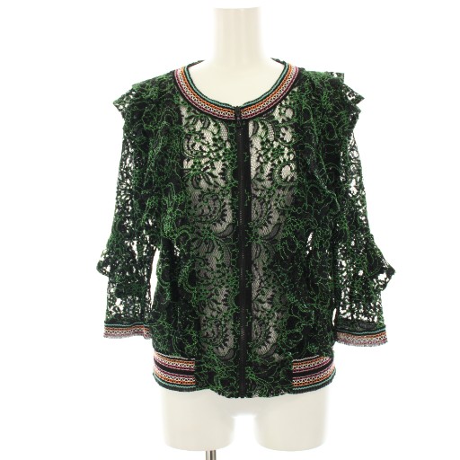 【中古】ヴィヴィアンタム シャツジャケット ブルゾン 七分袖 総レース ジップアップ シアー 38 黒 ブラック 緑