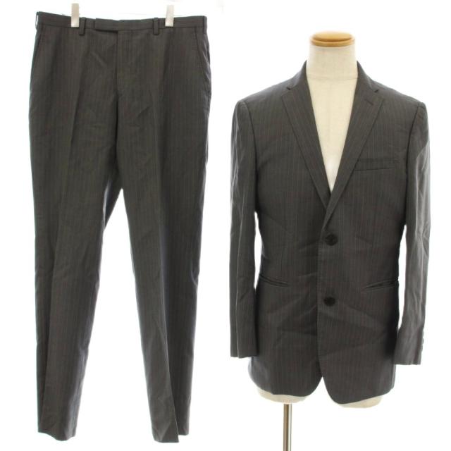 【中古】バーバリーブラックレーベル シングルスーツ テーラードジャケット パンツ ストライプ柄 ウール シルク混 38L