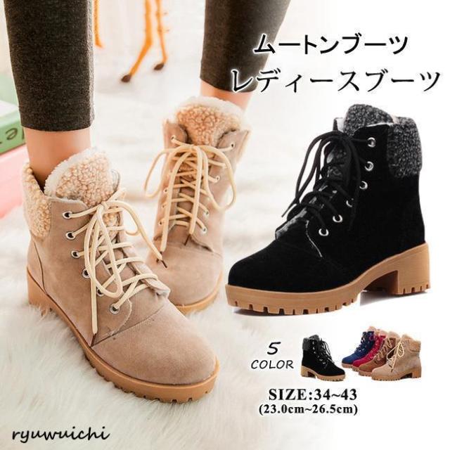 ムートンブーツ ショートブーツ レディース 暖かい 無地 スエード調 裏ボア ハイヒール レースアップブーツ ショート丈 コーンヒール 防寒 ワイン 大きいサイズ