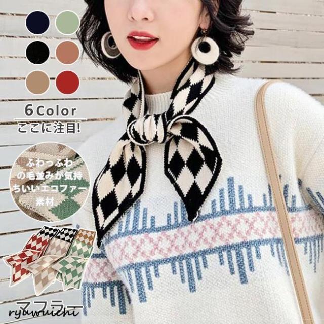 ニットスヌード レディース マフラー ストール ニットチョーカー チェック柄 あったかい 可愛い ネックウォーマー 無地 軽い シンプル