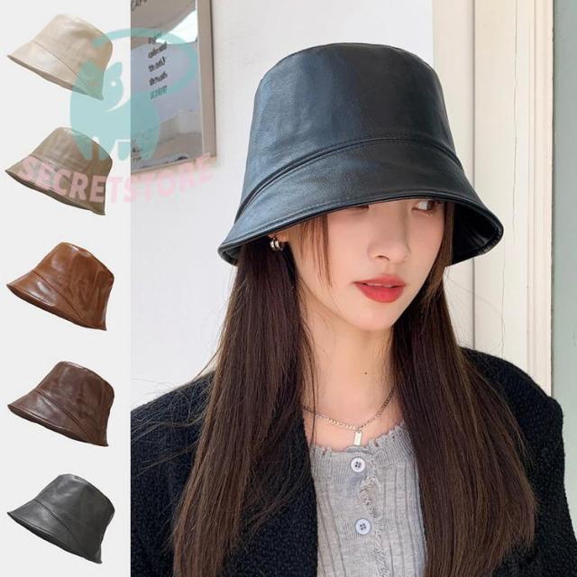 レザーバケットハット レディース メンズ ハット 帽子 アウトドア 深め 小顔効果 合成皮革 日よけ 父の日 2025