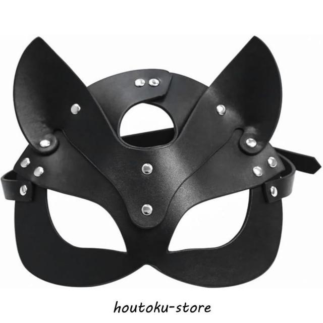 コスプレ マスク PUレザー製 仮面舞踏会 パーティー イベント用 変装 仮装小道具(ネコ ブラック)