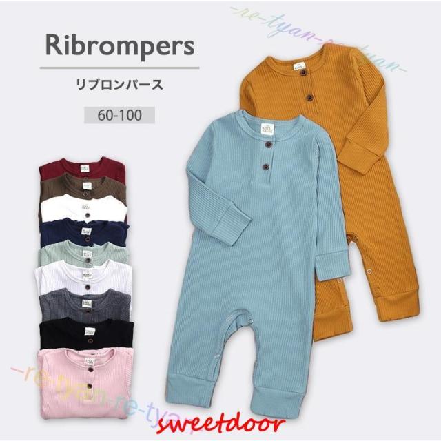 長袖リブロンパース ベビー服 男の子 女の子 新生児 カバーオール ロンパース ジャンプスーツ ベビー