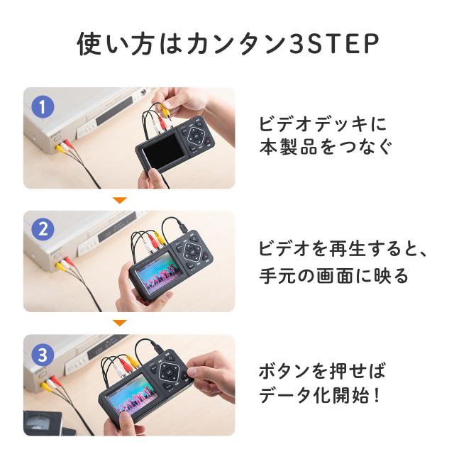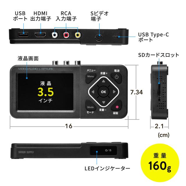 ビデオキャプチャー RCA AV S端子 HDMI出力 キャプチャーボード 480p 60Hz モニター付き 3.5インチ VHS ビデオテープ オーディオキャプチャ USBメモリ SDカード[400-MEDI029N]