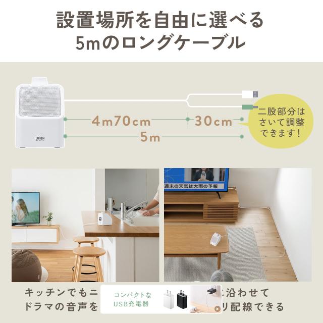テレビ用手元スピーカー 高齢者向け 有線USB給電 5mロングケーブル 大音量 簡単操作[400-SP118]