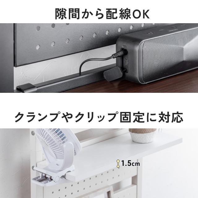 ●有孔ボード部分だけでなくフレームもマグネット対応です。マグネット付きの電源タップの配線にピッタリです。