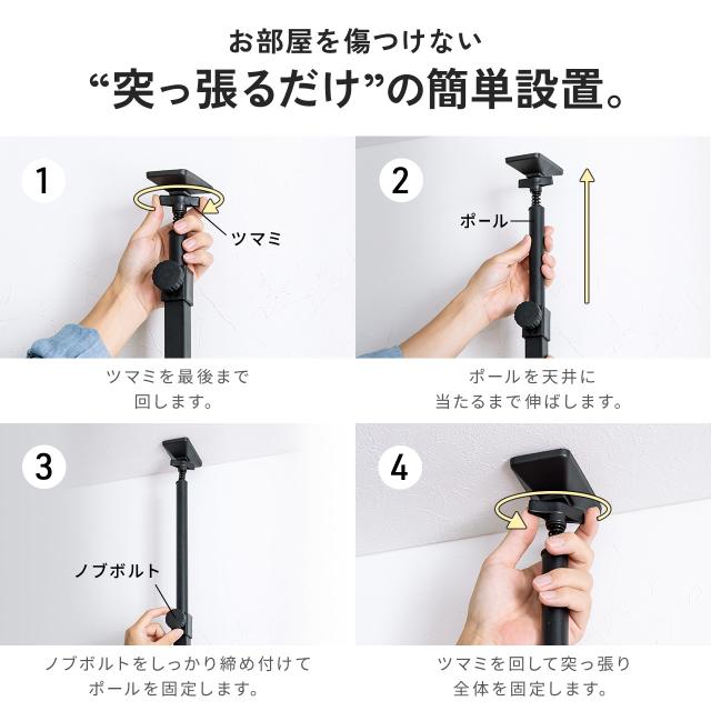 ●突っ張り式なので、床と天井があればどこでも簡単に設置ができます。
