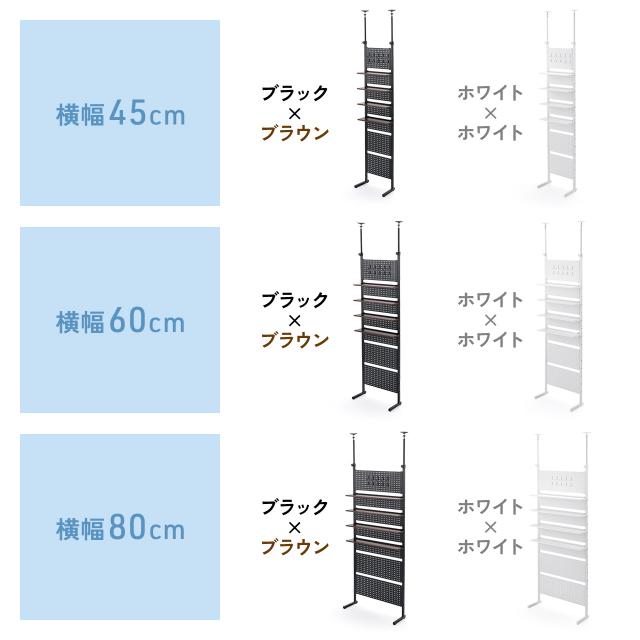 突っ張り棚 突っ張りラック 幅60cm 有孔ボード シェルフ 棚 4段 壁面収納 ウォールシェルフ 間仕切り キッチン 玄関 パントリー スリム 工事不要 ブラック ホワイト[100-TSF005]