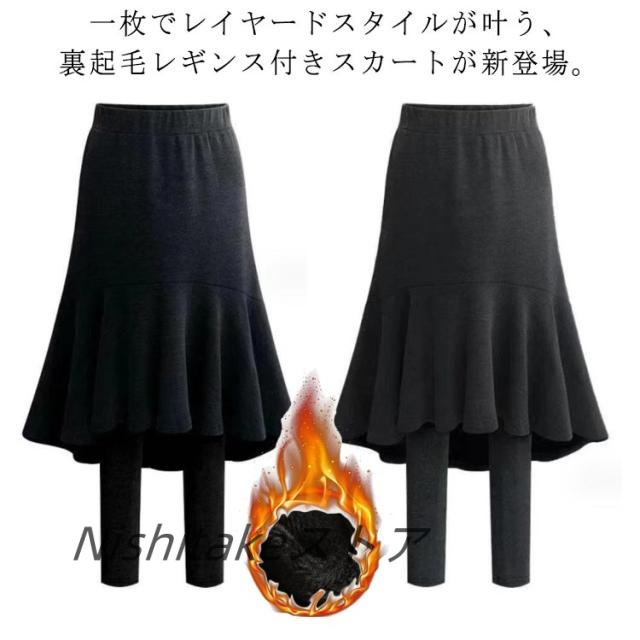 レギンス付きスカート スカートレギンス 厚手 スカート付きレギンス あたっか 膝下 裏起毛と薄手2タイプ フレアスカート ロングスカート 秋冬 Aライン レディース 一体型 レギパン 裏起毛と薄手2タイプ 防寒 極暖 ウエストゴム ストレッチ 大きいサイズ ロング丈