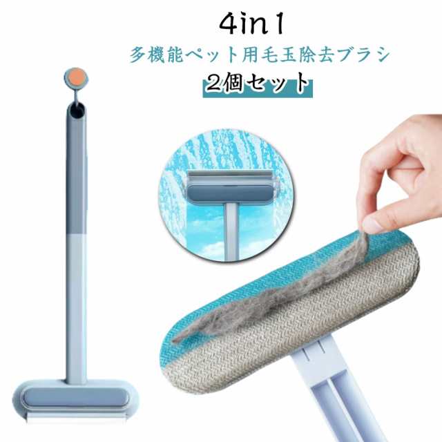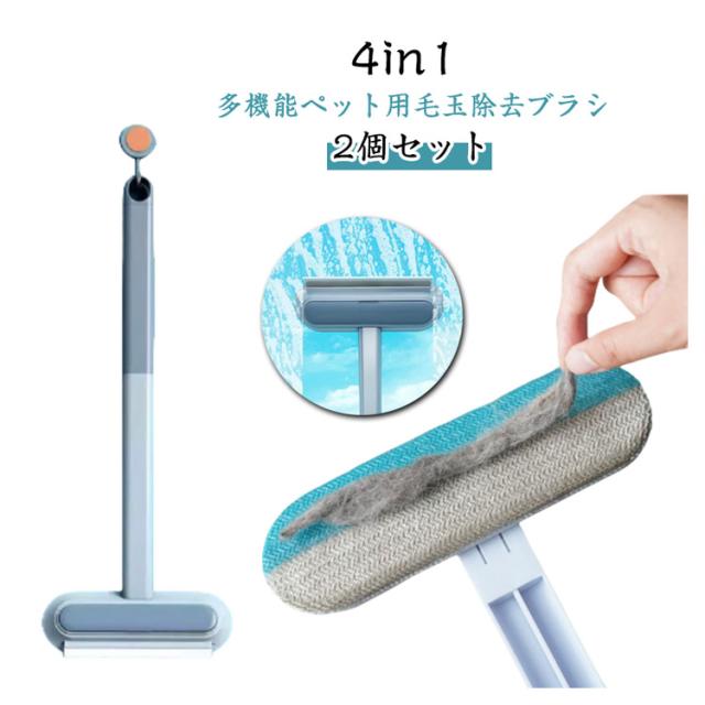 抜け毛取り 犬用 4in1 2個セット 多機能 掃除ブラシ 窓掃除道具 ガラススクレーパー 猫の毛取り 猫 毛玉取り 抜け毛クリーナー 猫毛取りブラシ 静電気除去 乾湿両用 繰り返し使える 長さ調節可能 掃除ブラシ ペット毛対応