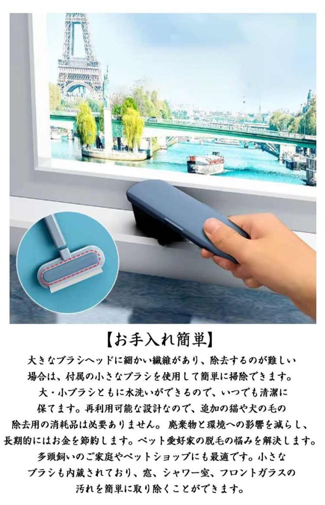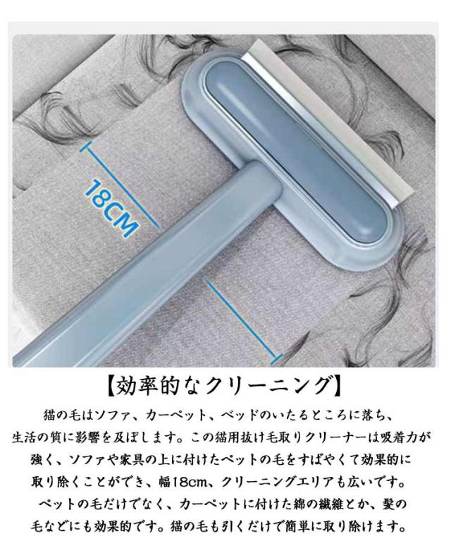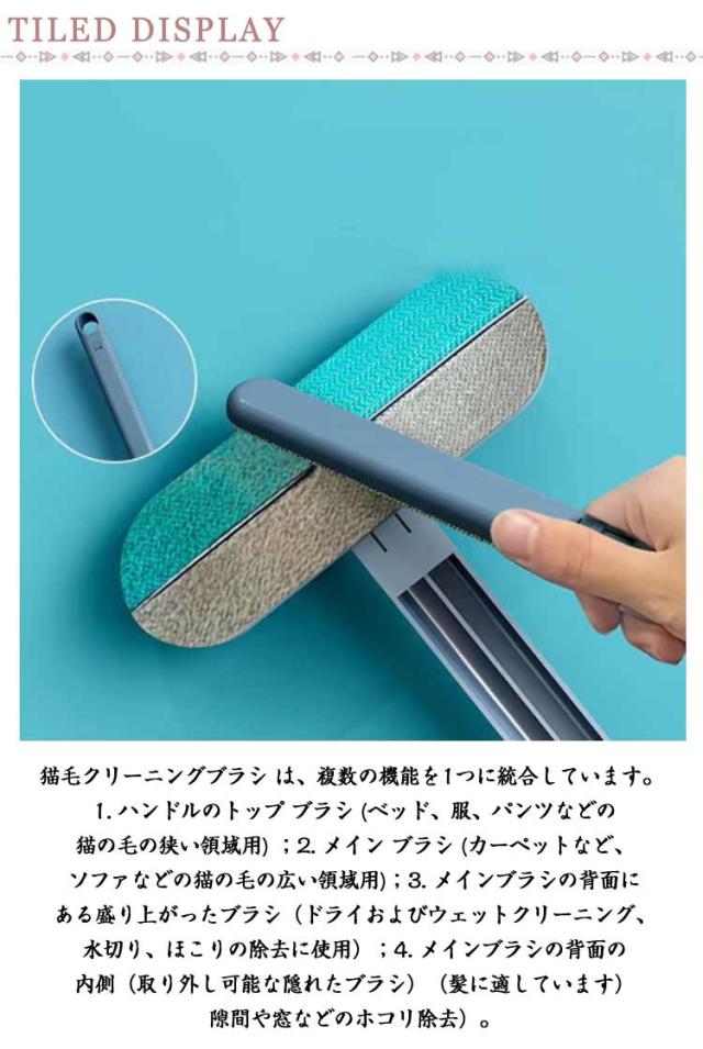 | 4in1 多機能ペット用毛玉除去ブラシ2個セット。猫毛クリーニングブラシ は、複数の機能を1つに統合しています。 1. ハンドルのトップ ブラシ (ベッド、服、パンツなどの猫の毛の狭い領域用) ;2. メイン ブラシ (カーペットなど、ソファなどの猫の毛の広い領域用); 3. メインブラシの背面にある盛り上がったブラシ(ドライおよびウェットクリーニング、水切り、ほこりの除去に使用);4. メインブラシの背面の内側(取り外し可能な隠れたブラシ)(髪に適しています)隙間や窓などのホコリ除去)。 【効率的なクリーニング】猫の毛はソファ、カーペット、ベッドのいたるところに落ち、生活の質に影響を及ぼします。この猫用抜け毛取りクリーナーは吸着力が強く、ソファや家具の上に付けたペットの毛をすばやくて効果的に取り除くことができ、幅18cm、クリーニングエリアも広いです。 ペットの毛だけでなく、カーペットに付けた綿の繊維とか、髪の毛などにも効果的です。猫の毛も引くだけで簡単に取り除けます。 【長さ調節可能なハンドル&吊り下げ可能】握りやすさを高めた触り心地の良いPP製ハンドルを採用します。それに、ハンドルは2段組み合わせ可能のため、必要に応じてハンドルを外したり組み合わせたりして長さを調節でき、簡単に掃除や清潔をすることができます。ハンドルの端には丸い穴のデザインがあり、簡単に吊り下げて保管できます。 【家具を傷つけません】猫の毛取り器は独自のフランネルを使用し、毛を吸収して取り除きます。 柔らかいフランネルにより、ソファ、カーペット、ベッド、その他の家具の表面を傷つけることなく、猫の毛を素早く効果的に掃除できます。 鋭利で粗い表面を掃除するときは、フランネルの耐用年数を縮めないよう、強くこすらないよう注意してください。 【お手入れ簡単】大きなブラシヘッドに細かい繊維があり、除去するのが難しい場合は、付属の小さなブラシを使用して簡単に掃除できます。 大・小ブラシともに水洗いができるので、いつでも清潔に保てます。再利用可能な設計なので、追加の猫や犬の毛の除去用の消耗品は必要ありません。 廃棄物と環境への影響を減らし、長期的にはお金を節約します。ペット愛好家の脱毛の悩みを解決します。多頭飼いのご家庭やペットショップにも最適です。小さなブラシも内蔵されており、窓、シャワー室、フロントガラス | |