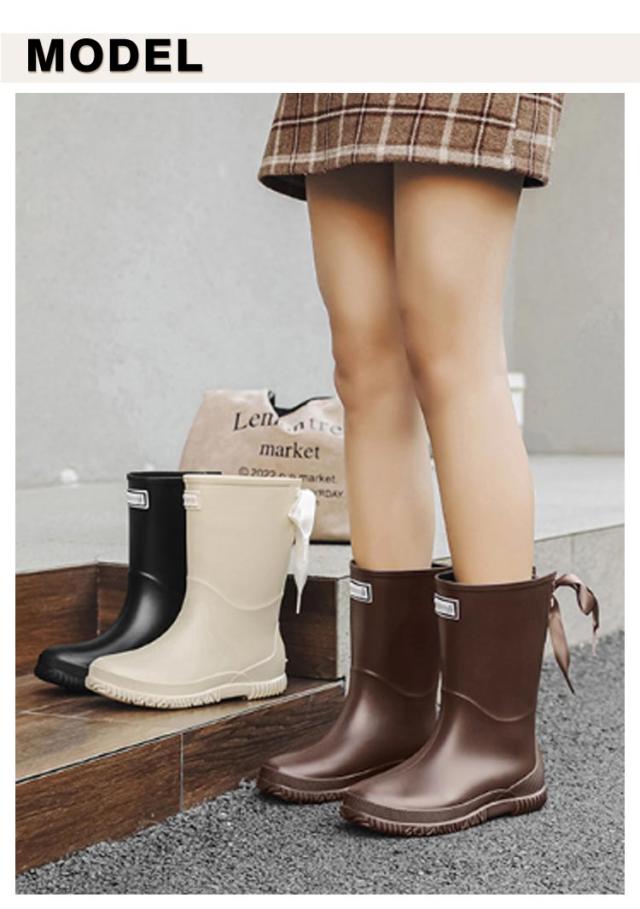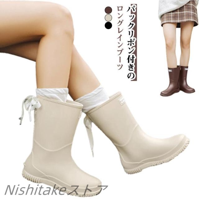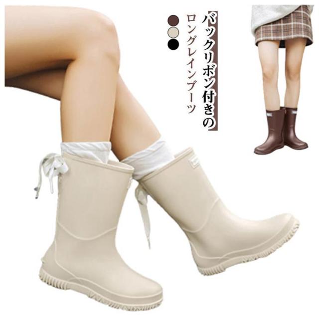 雨靴 滑りにくい レディース 靴 バックリボン 長靴 ロング丈 梅雨 完全防水 リボン付き 防水靴 おしゃれ 台風 対策 アウトドア 防水 レインブーツ レインブーツ 歩きやすい 撥水 雨の日 通勤 通学 豪雨 晴雨兼用