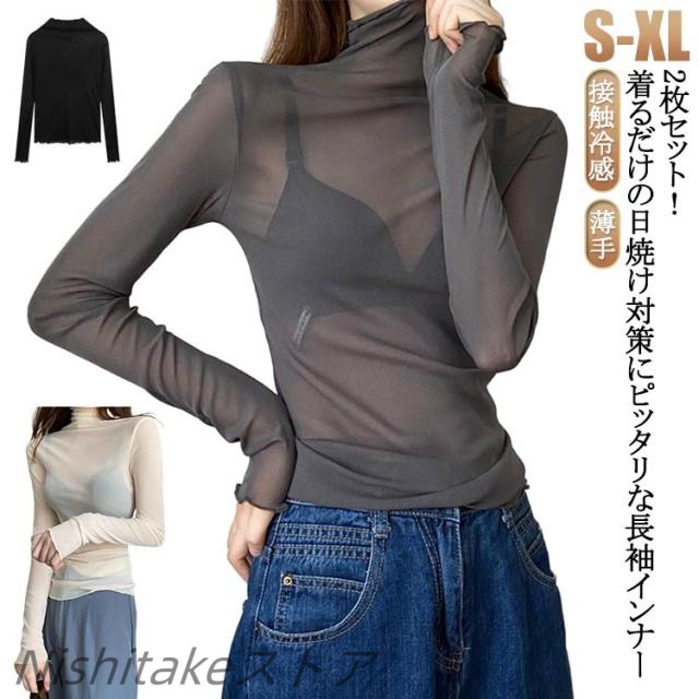 長袖 シアートップス 接触冷感 ハイネック レディース クール冷感 紫外線対策 40代 ボトルネック トップス UV対策 トップス UVカット シアートップス シースルー 冷房対策 レイヤード インナー セクシー 肌見せ きれいめ ミセス 20代 30代 シアー 50代 送料無料 大きいサイズ