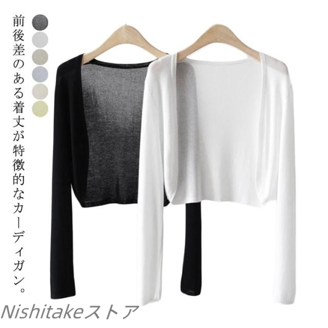 紫外線 長袖 UVケア ショート丈 ナイトアウター カーディガン シースルー トップス 前後差 サマーニット カーデ 無地 トップス ニット 冷房対策 透け感 冷房対策 薄手 羽織り シアーカーディガン 春夏秋 重ね着 レイヤード お洒落 カジュアル フェミニン