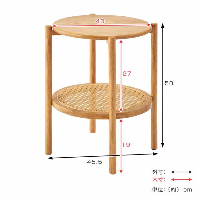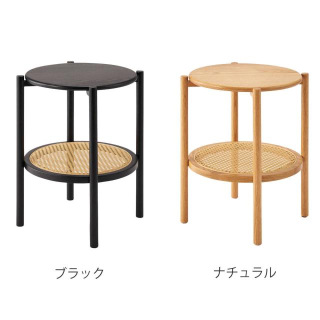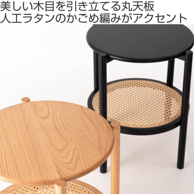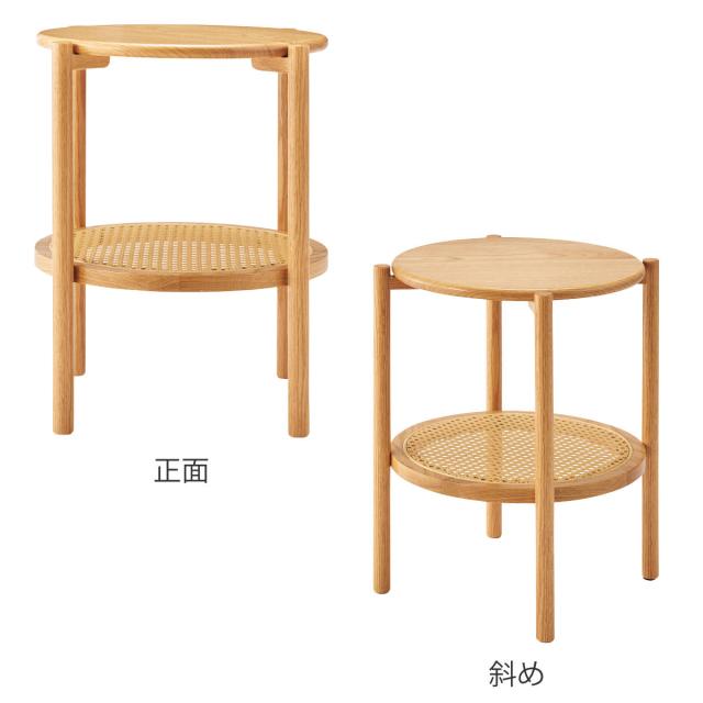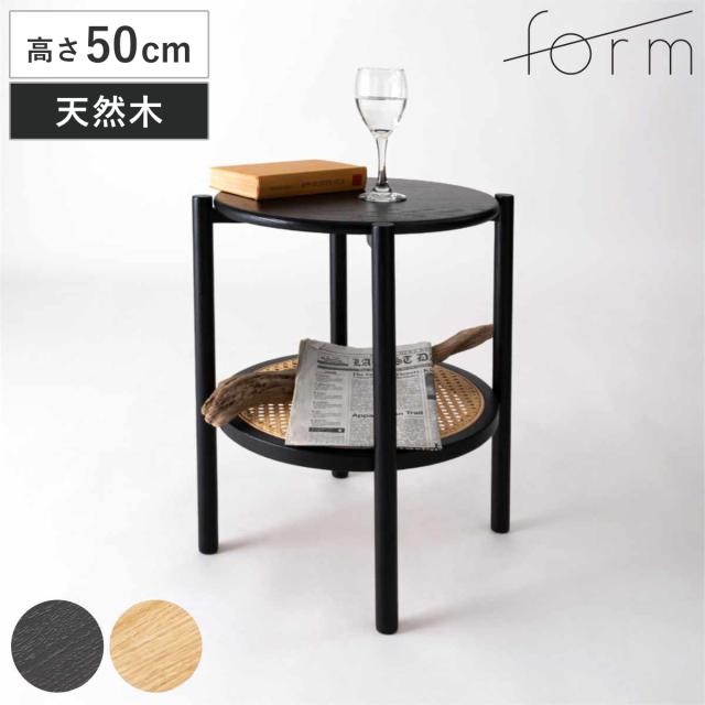 form サイドテーブル 高さ50cm 円型 2段 チャービル ( テーブル ソファサイド ベッドサイド 机 ミニテーブル 木製 天然木 丸 棚付き リビング リビングテーブル コーヒーテーブル ソファテーブル おしゃれ かごめ編み )