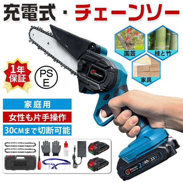 【正規品】 チェーンソー 充電式 小型 6インチ マキタ バッテリー互換 電動ノコギリ ハンディチェーンソー 安全ロック 高速切断 木工切断 家庭用 片手 軽量 女性