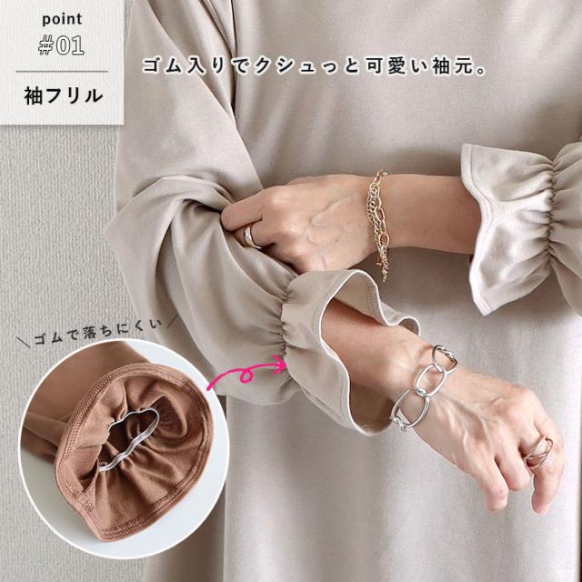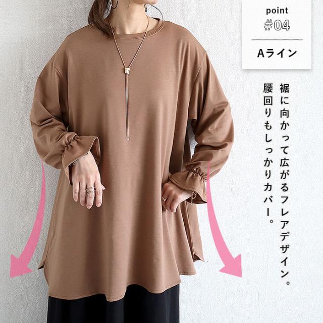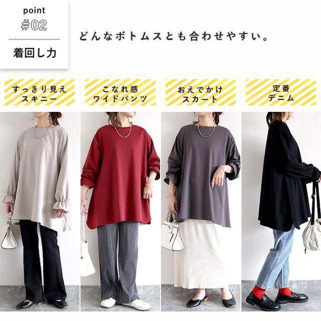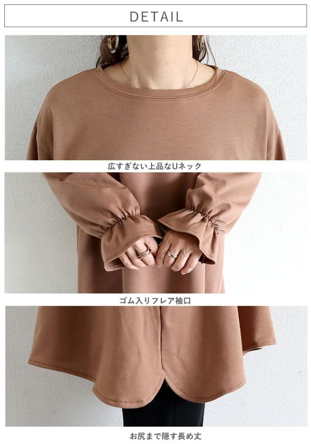 トップス レディース カットソー 春 秋 黒 おしゃれ 長袖 無地 コットン混 綿混 袖フレア ボリューム袖 プルオーバー Aライン 着回し 体型カバー 可愛い シンプル 40代 30代 50代 60代 大きいサイズ ゆったり 大人 カジュアル かわいい きれいめ SALE セール uricca ウリッカ うりっか