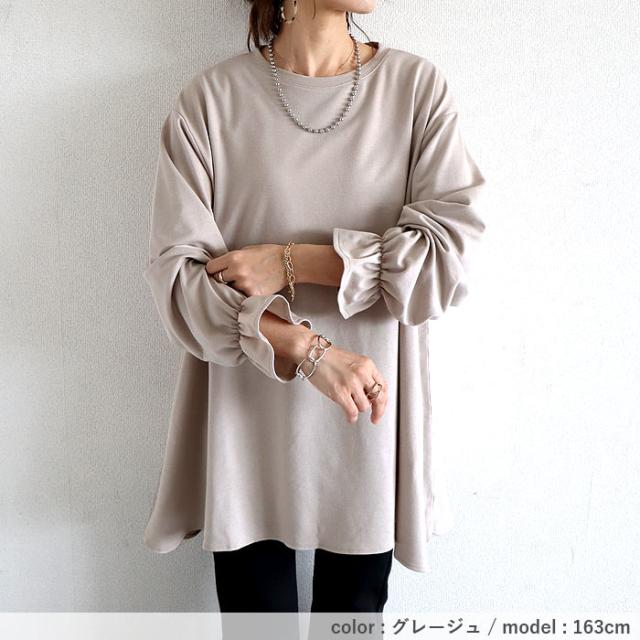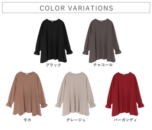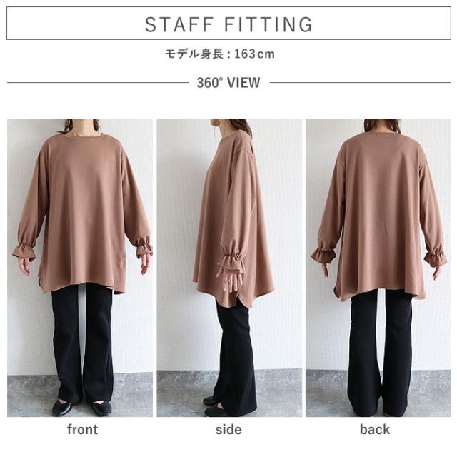 冬新作 トップス レディース カットソー 春 秋 黒 おしゃれ 長袖 無地 コットン混 綿混 袖フレア ボリューム袖 プルオーバー[郵3]^t1120^ ★
