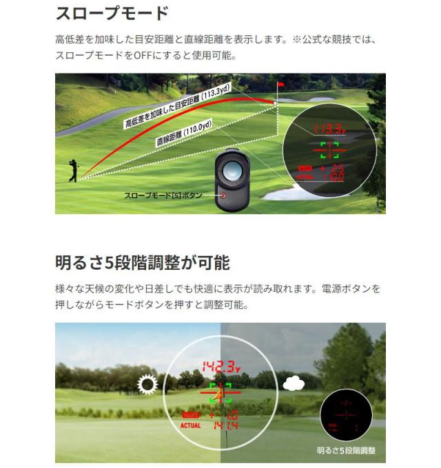 キーワード: レーザー 距離計 計測器 測定器 ノーマルモード ルール適合 トーナメントモード ツアーモード 公式競技 ゴルフ用品 傾斜 高低差起伏 スロープ 男性用 女性用 メンズ レディース レディス
