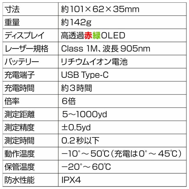 充電端子:USB Type-C 充電時間:約3時間 倍率:6倍