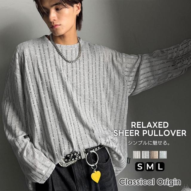 クラシカルエルフ秋新作 Classical Origin トップス カットソー メンズ プルオーバー 長袖 グランジモード シアー リラックス シンプル ベーシック トレンド 上品 ヴィンテージ ニット ビッグシルエット ゆとり ロングシーズン 大きいサイズ 2025aw co1010027