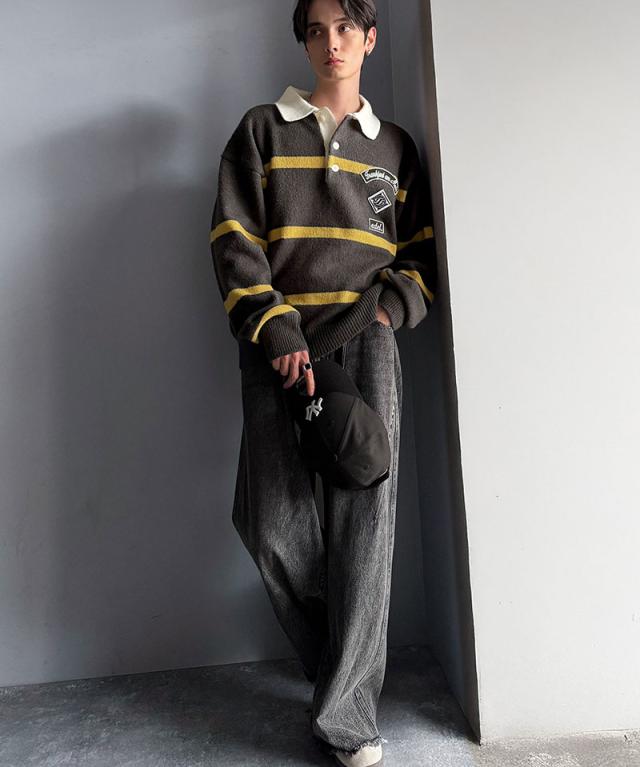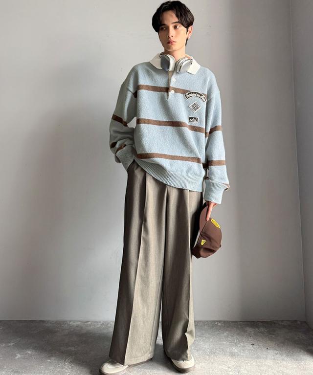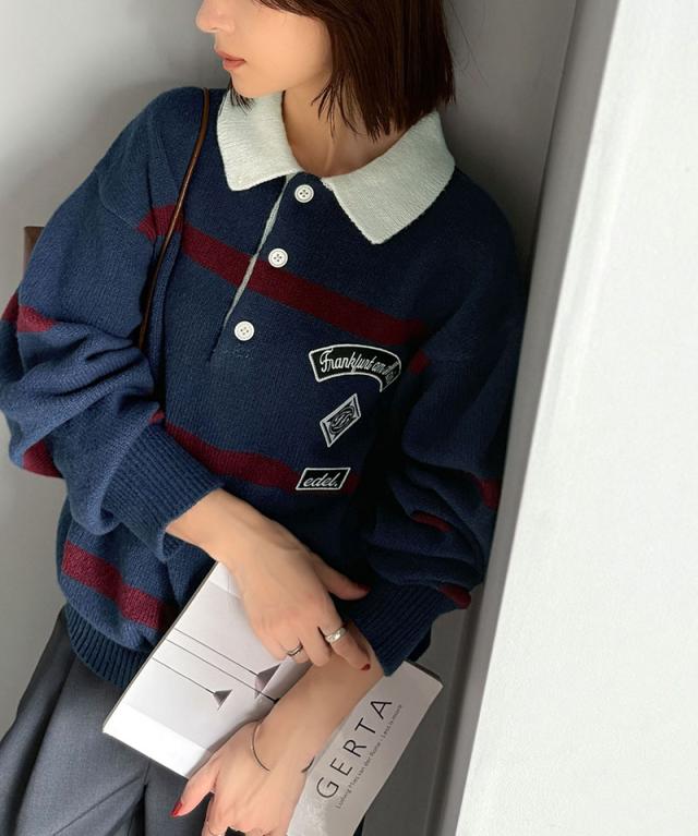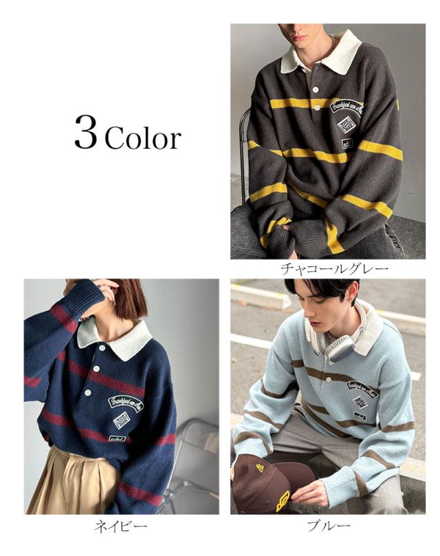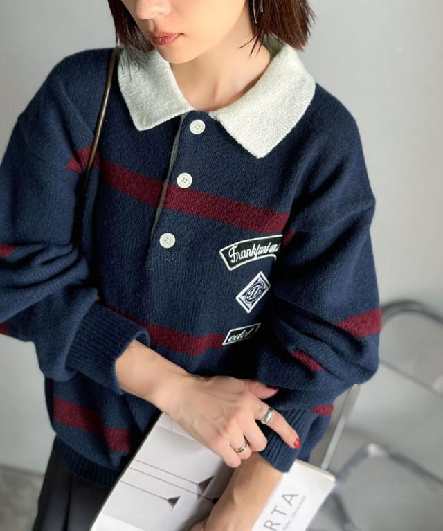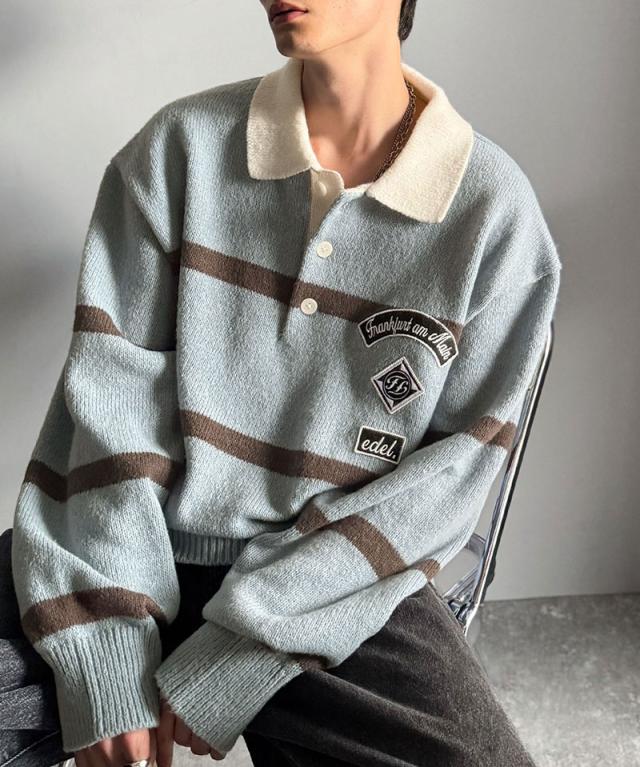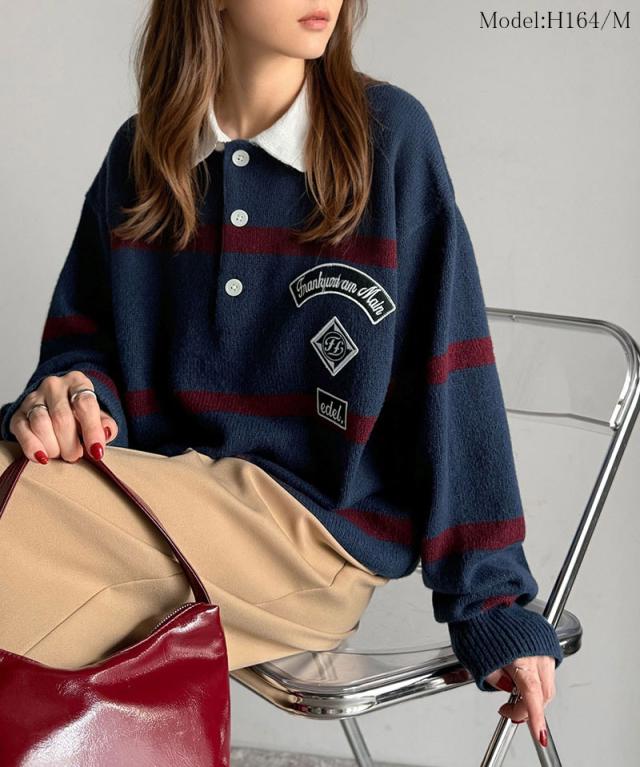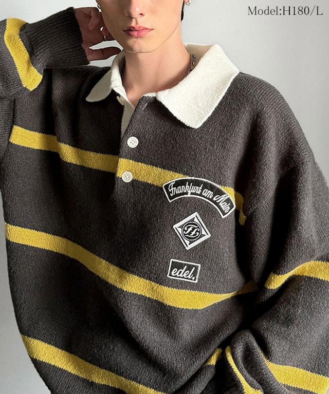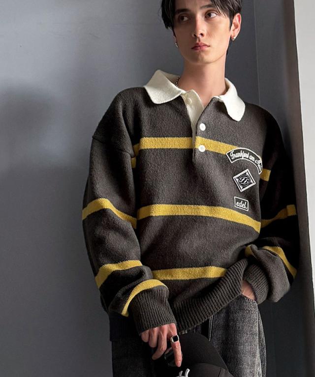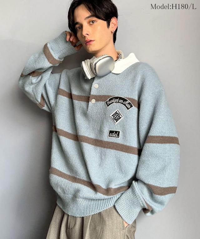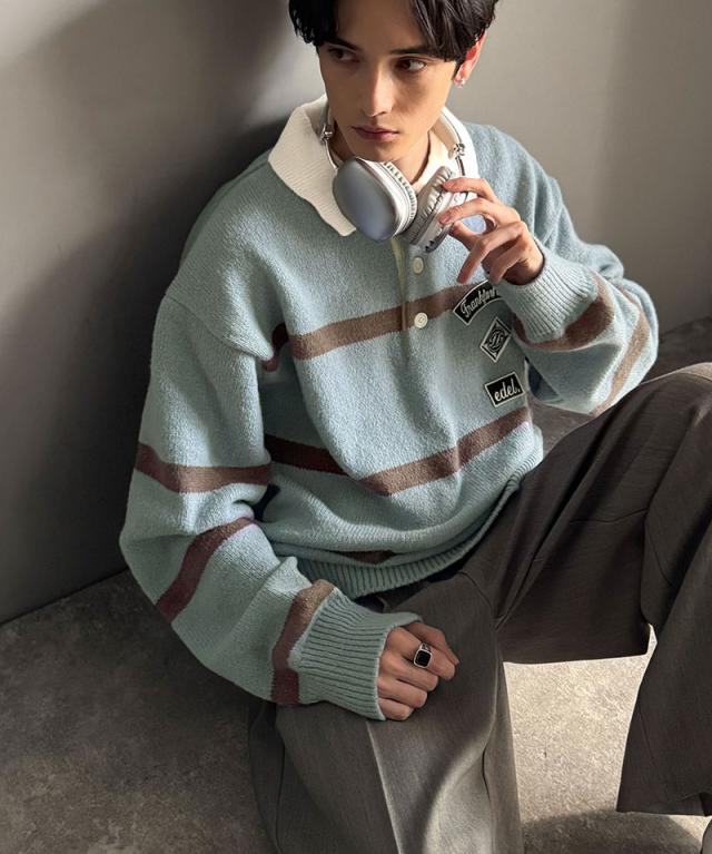 トレンド感満載のラガーポロニット。軽やかなニット素材で、着心地も抜群。
