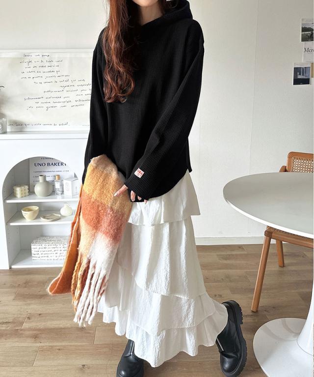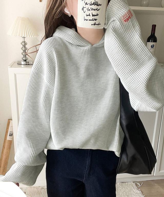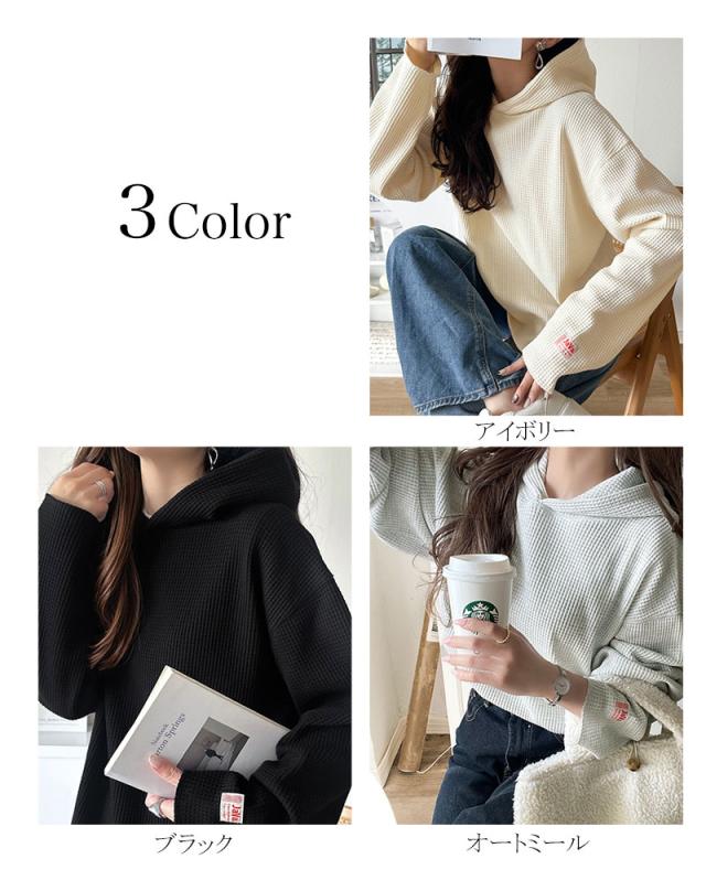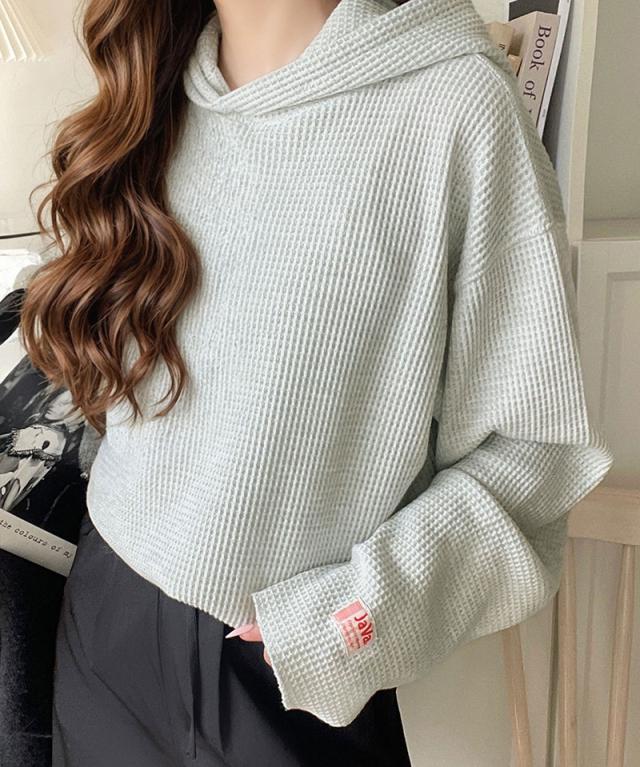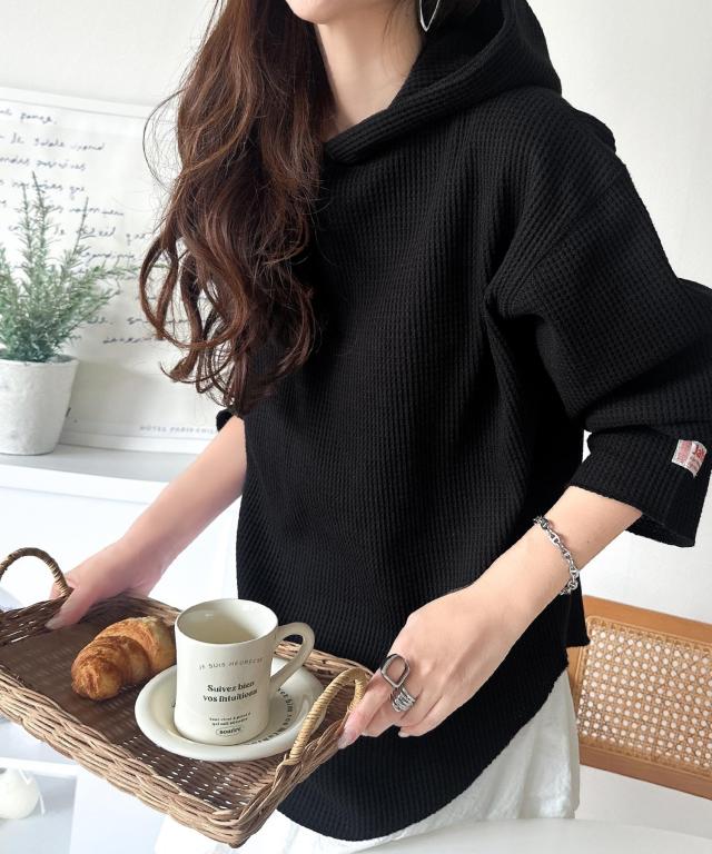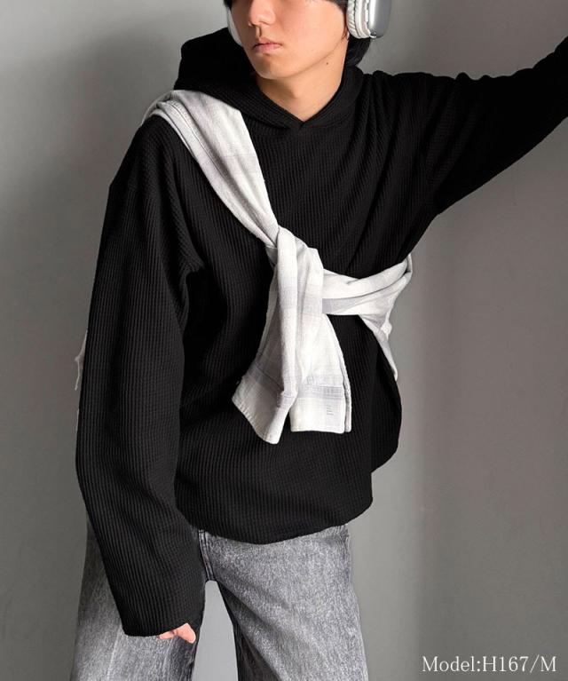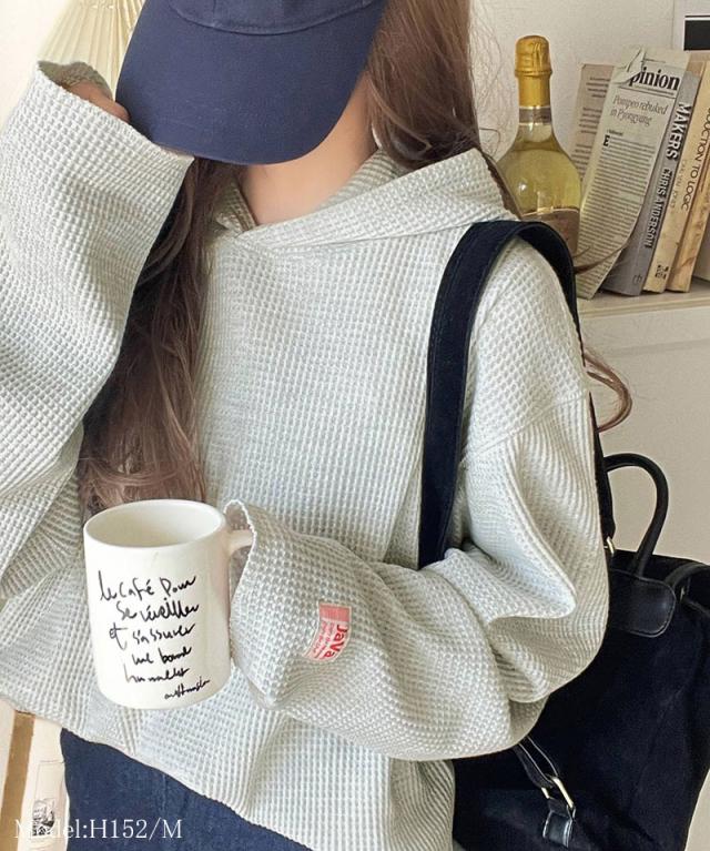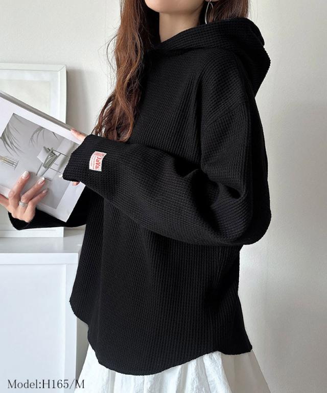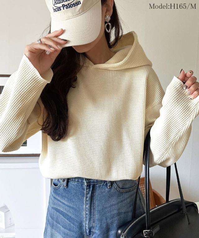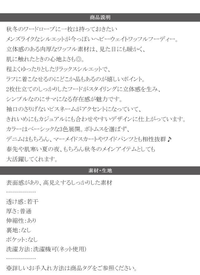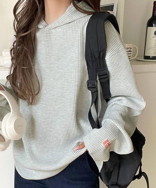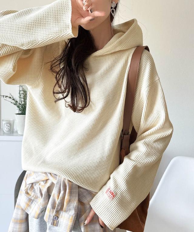 秋冬のワードローブに一枚は持っておきたい、メンズライクなシルエットが今っぽいヘビーウェイトワッフルフーディー。