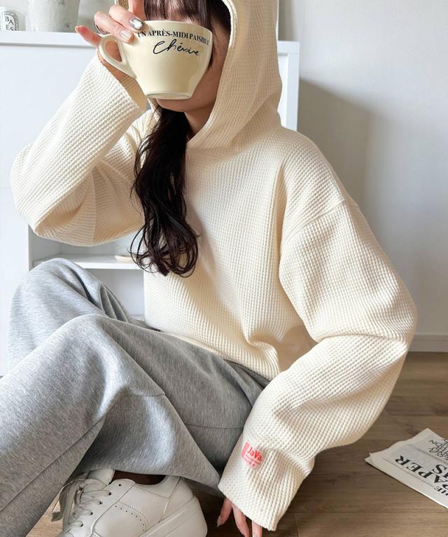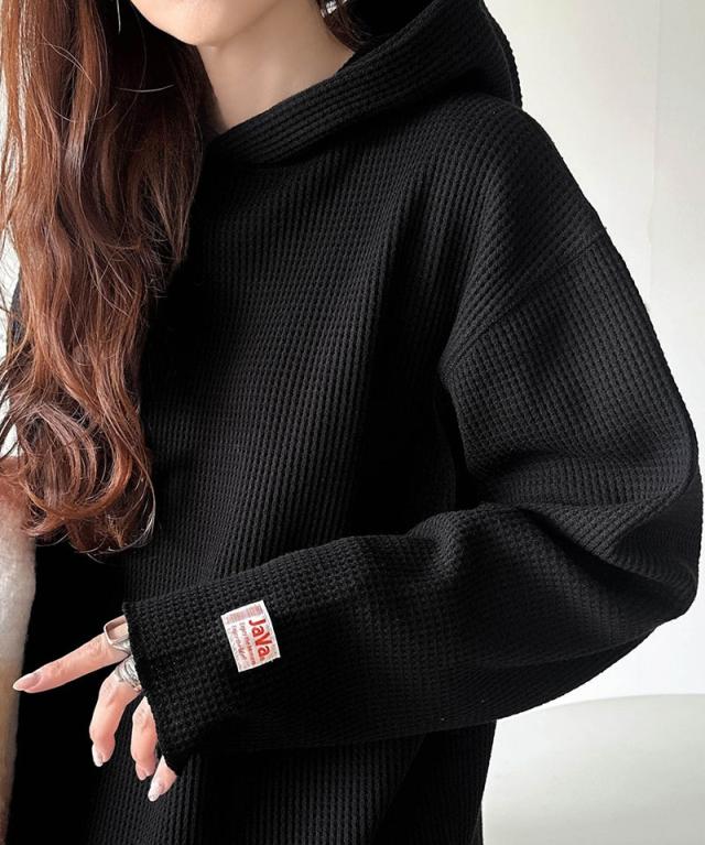 クラシカルエルフ秋新作 java ジャバコラボ パーカー レディース おしゃれ トップス ヘビーウェイト ワッフルフーディー プルオーバー 大人 お洒落 ゆるシルエット おうち時間 フード付き タウンユース ルームウェア 大きいサイズ 2025aw jv1010467