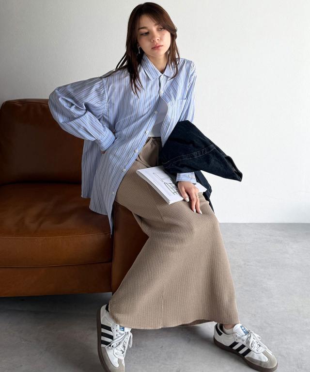 立体感のある凹凸がスタイリングに奥行きを与え、シンプルなトップスと合わせるだけでこなれた印象に仕上がります。