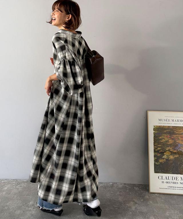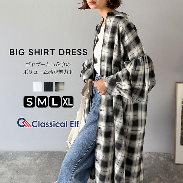 クラシカルエルフ秋新作 ワンピース 秋冬 大きいサイズ レディース カジュアル 柄アソート バンドカラー ビッグシャツ ギャザー 羽織り 体型カバー オーバーサイズ 華やか 前開き オールシーズン 大きいサイズ 2025aw ce1010478