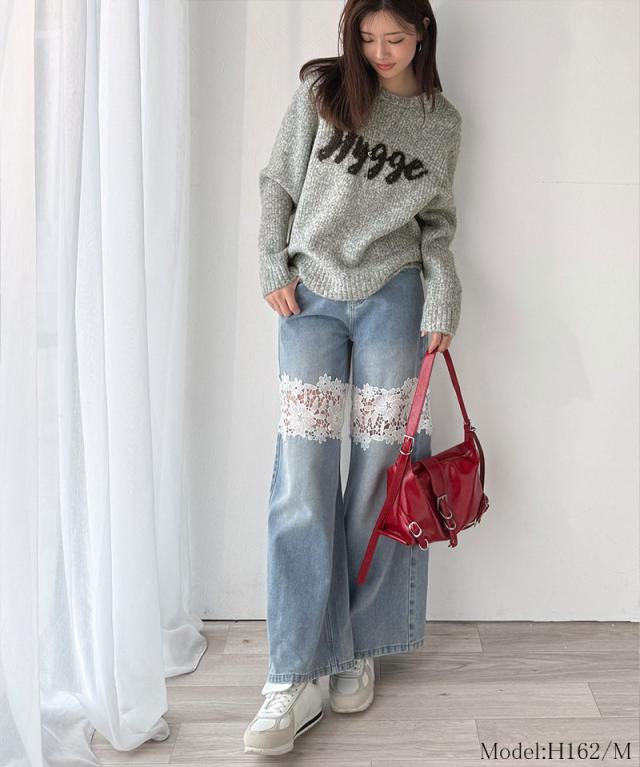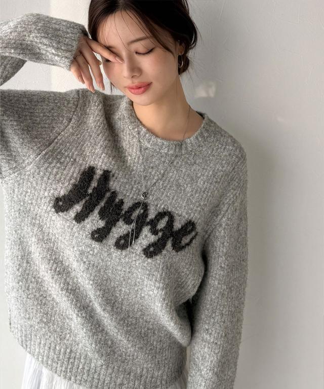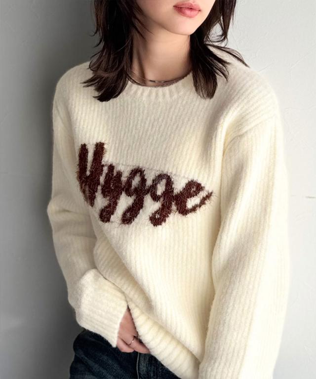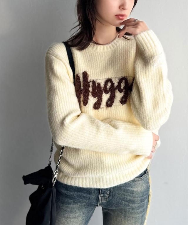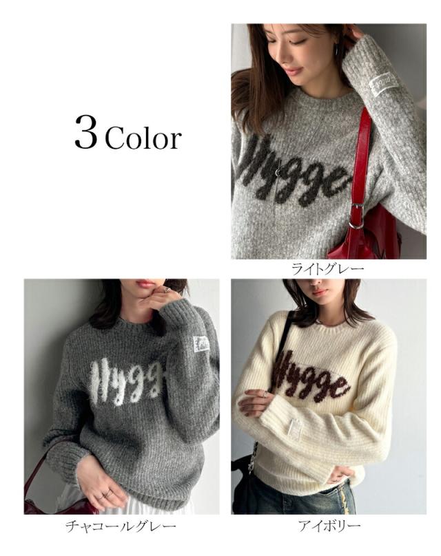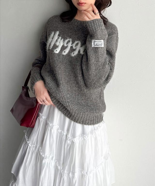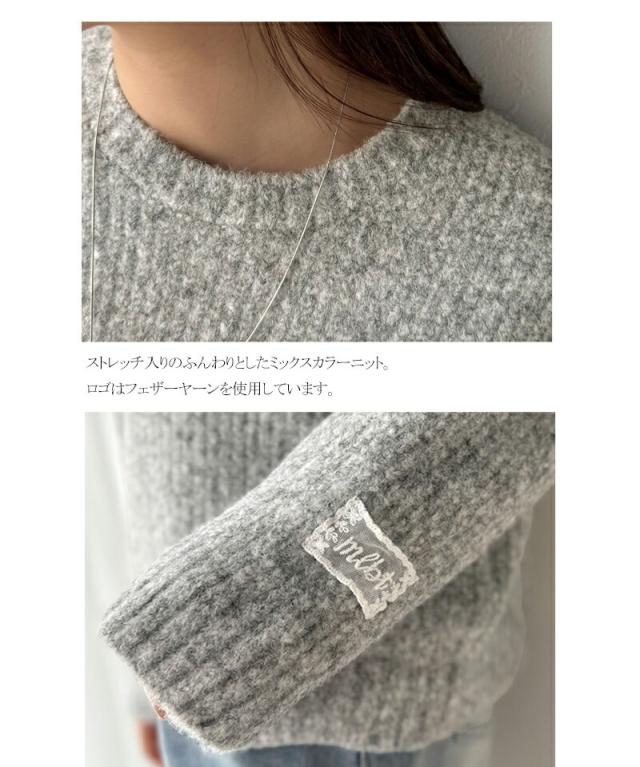 クラシカルエルフ秋新作 mily bilet トップス ニット レディース フェザー ジャガード ロゴ ミックスニット プルオーバー 長袖 ゆるっと オーバーサイズ 大きいサイズ 2025aw mi1329055