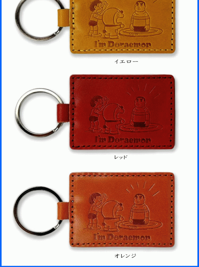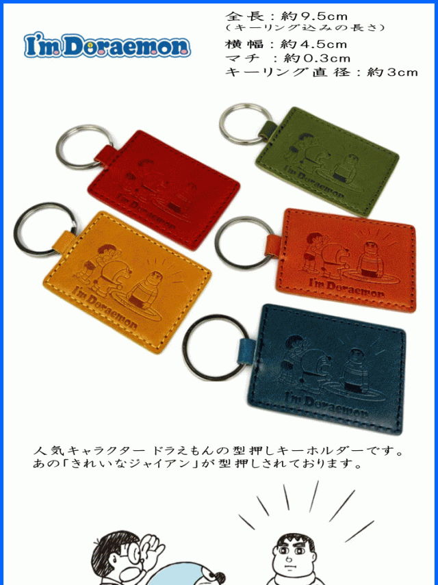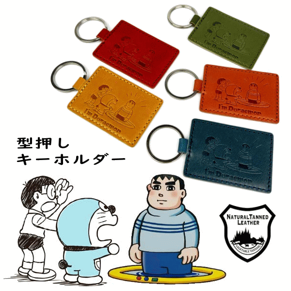 レザーキーホルダー ドラえもん きれいなジャイアン 日本製 栃木レザー 本革 型押し キーリング DOR-56 ネイビー色 グリーン色 イエロー色 レッド色 オレンジ色