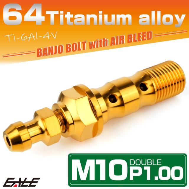 チタン M10 P1.00 バンジョーボルト エアブリーダー ニップル付 ブレーキライン ダブル ゴールド JA2596