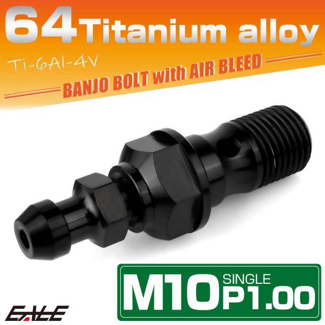チタン M10 P1.00 バンジョーボルト エアブリーダー ニップル付 ブレーキライン シングル ブラック JA2588