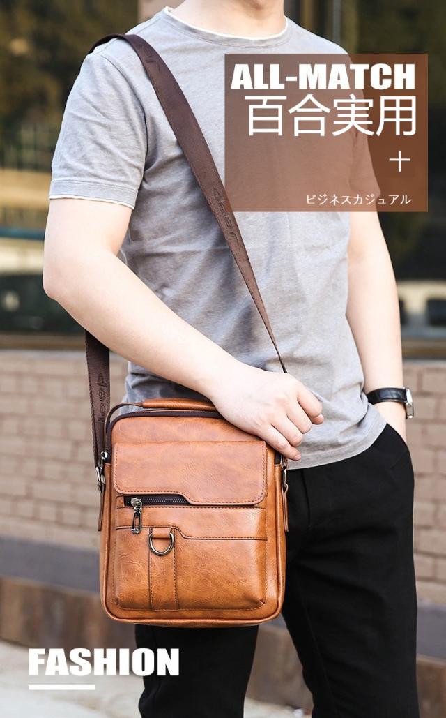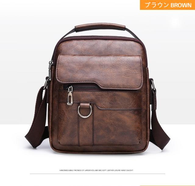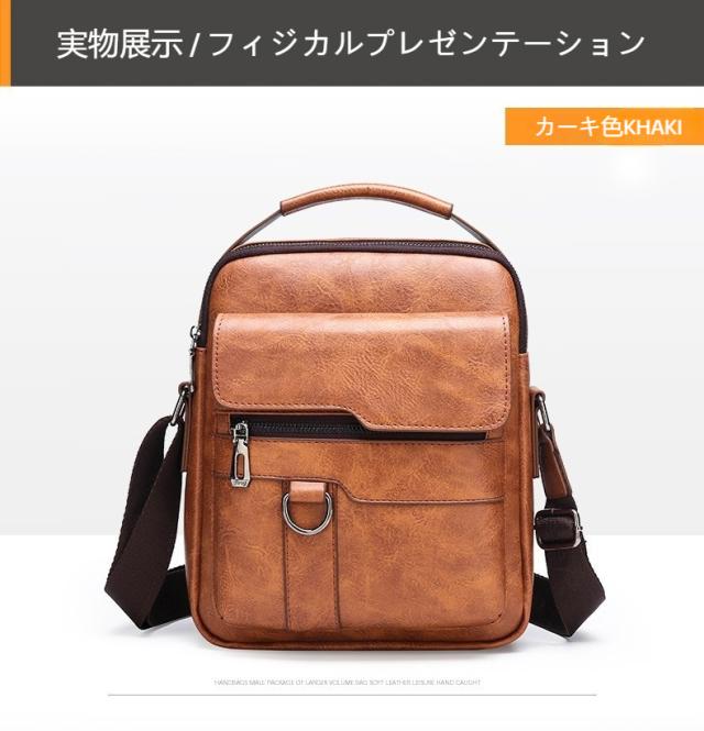 メンズ ショルダーバッグ ビジネスカジュアル 縦型 斜め掛け PUレザー ソフト ハンドバッグ ミニスクエアバッグ 旅行用バッグ