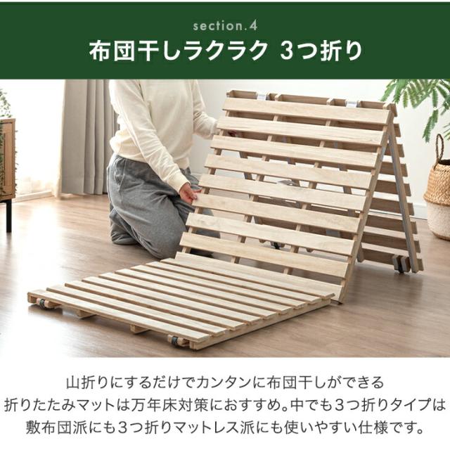 桐 すのこ すのこマット 三つ折り 折りたたみベット 折りたたみ シングルベッド ベッド すのこベッド 湿気対策 折りたたみすのこ 2分割 布団が干せる 木製