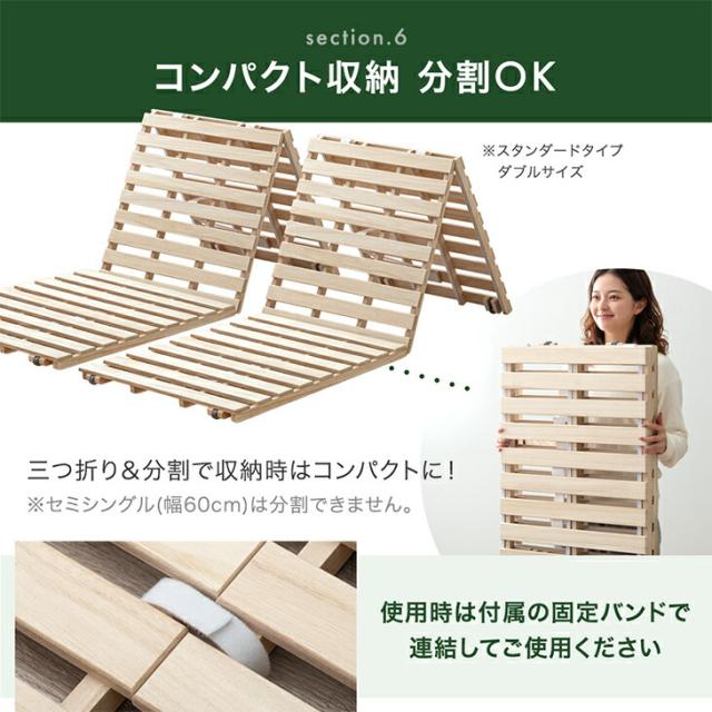 ・セミシングル(幅80cm)以上のサイズは分割できるコンパクト設計
