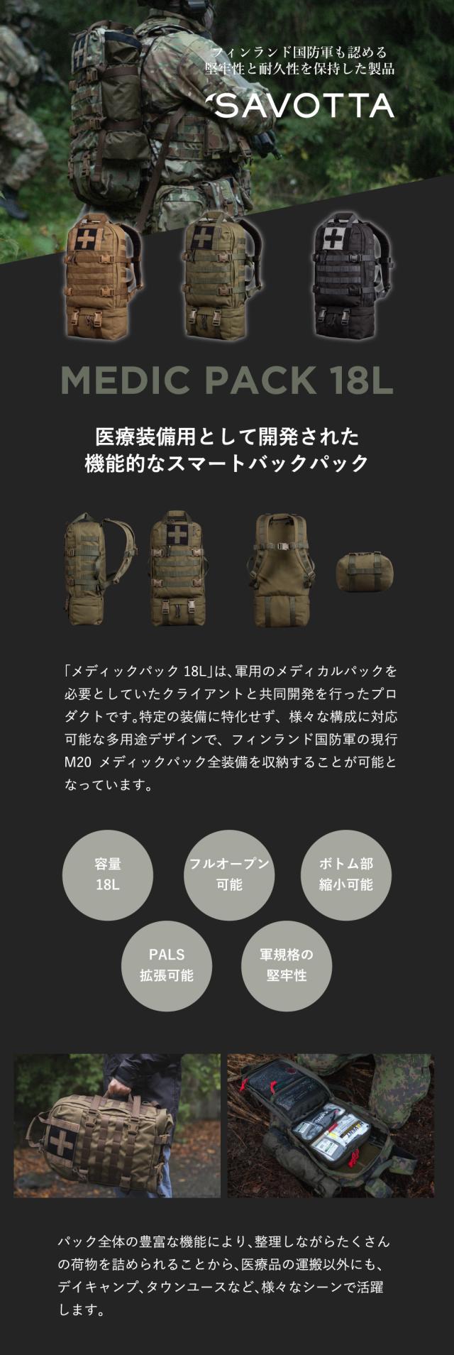 サヴォッタ メディック パック 18L SAVOTTA | A4対応 小さめ リュックサック デイパック 拡張可能 モールシステム アウトドア 登山 通勤 通学 旅行 釣り サイクリング ミリタリー A4 メンズ レディース フィンランド 医療用 防災用 非常用