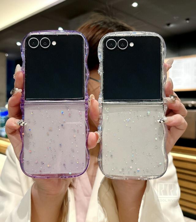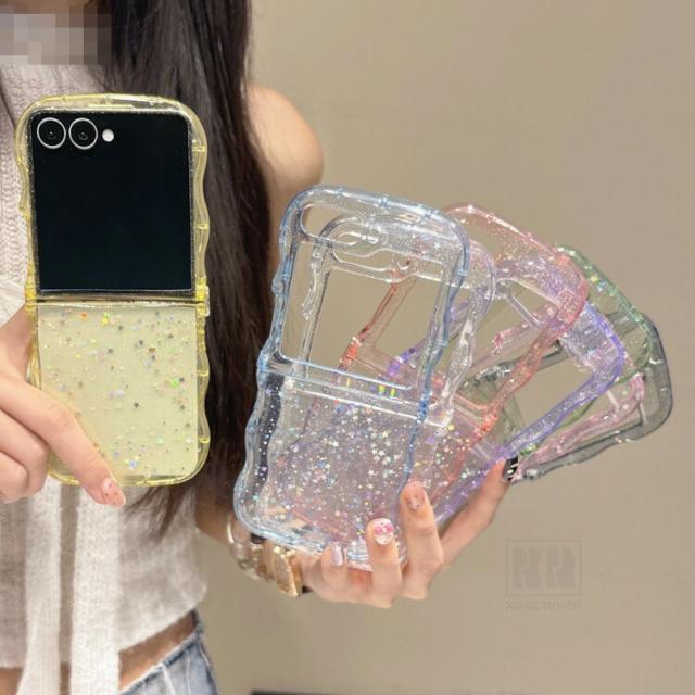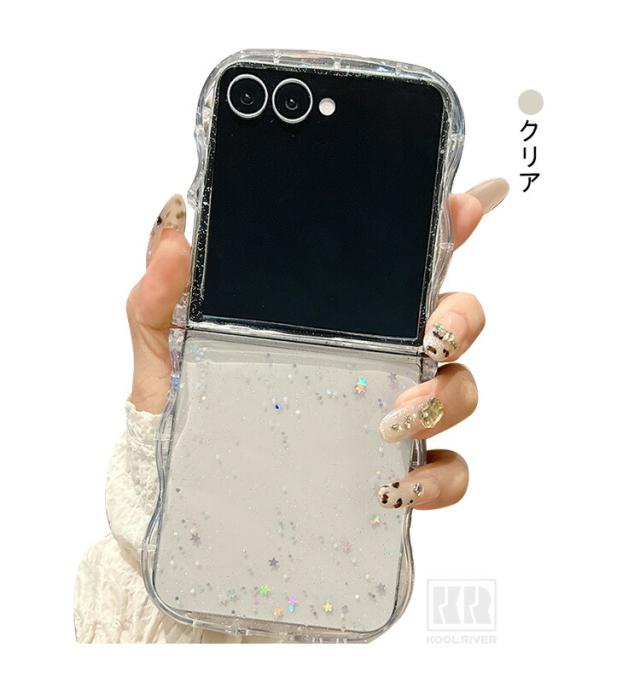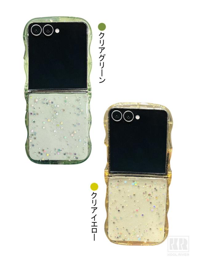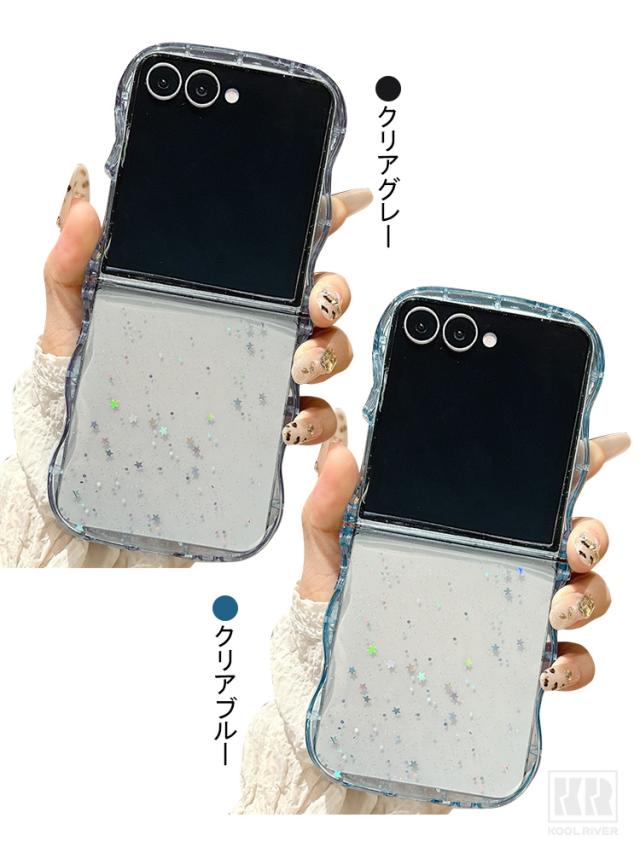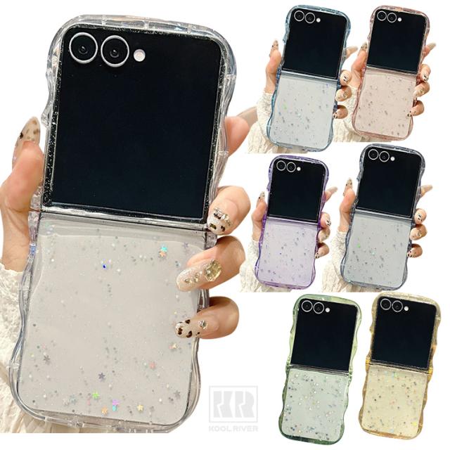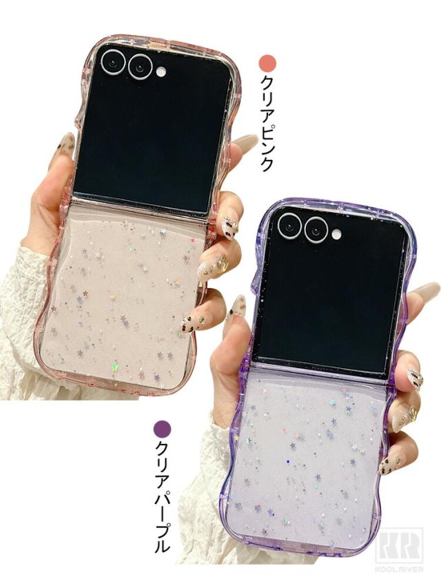 Galaxy Z Flip7 ケース ウェーブ 波型 なみなみ カバー 折りたたみ型 クリア 透明 TPUソフトケース 星形ラメ グリッター 可愛い お洒落 シンプル Samsung サムスン ギャラクシー Z フリップ7 保護ケース