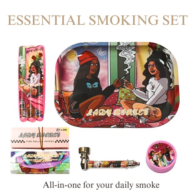 リラックスできる時間をより快適にするための必須アクセサリーがすべて揃ったこの喫煙具セットは、ローリングトレイ、ローリングペーパー、ジョイントケース、メタルハンドパイプ、グラインダーを一度に揃えたい方にとって理想的な選択肢です。