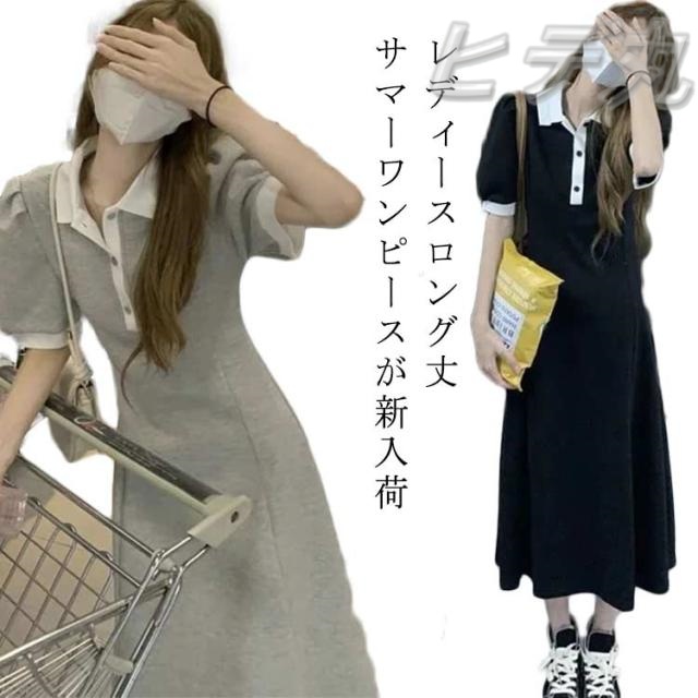 ポロシャツ ワンピース ロング丈 ポロシャツワンピ パフスリーブ ワンピース レディース ミモレ丈 夏 サマーワンピース ロングワンピ ポロワンピース ポロワンピース Tシャツワンピ 襟付き 大きいサイズ