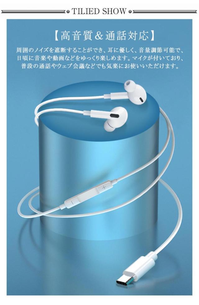 iPhone Type-C タイプc イヤホン ハイレゾ 有線 15/iPhone16/iPad HIFI音質 イヤホン 重低音 音量調節 マイク付き 通話可能 iPhone クリア通話 ステレオイヤフォン ヘッドホン Type Cインターフェース使用 AQUOS/Xperia/Galaxy/Huawei Mate 60