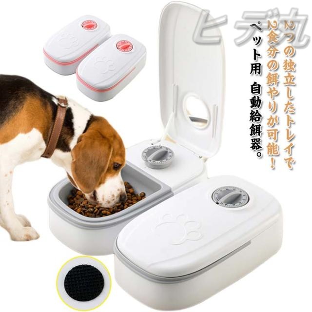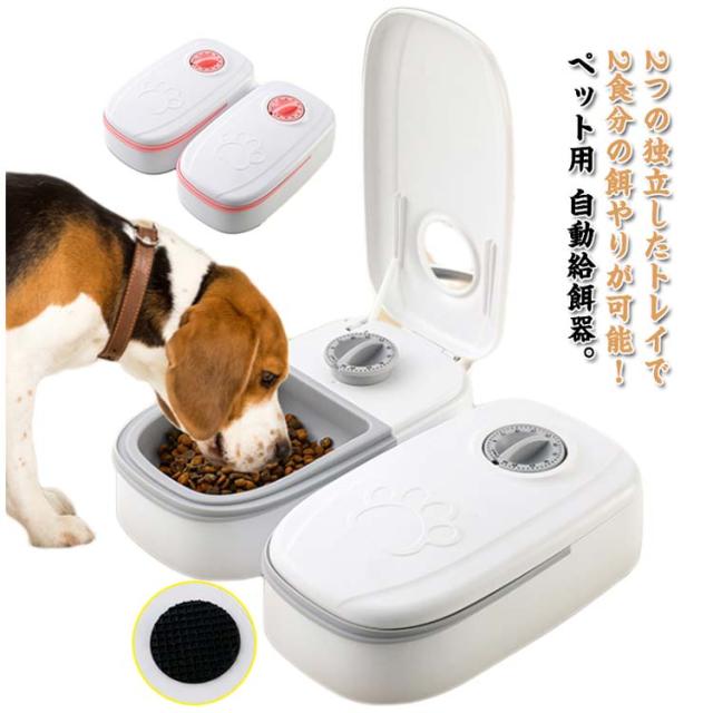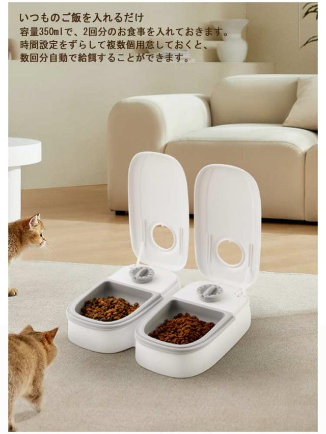 電池式 2食分 ペットフード 2匹 タイマー式 猫 自動給餌器 犬 自動餌やり機 給餌器 オートペットフィーダー エサ入り 多頭飼い ペット 定時定量 食器 お留守番 オートペットフィーダー 操作簡単 お手入れ簡単 中小型犬用 餌入れ 自動給餌器 ペット食器