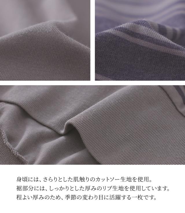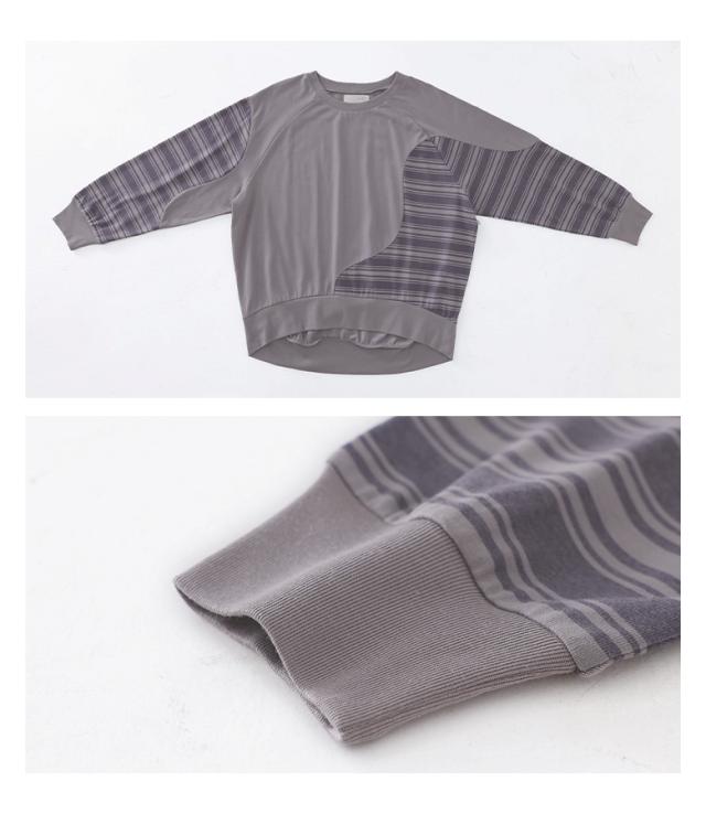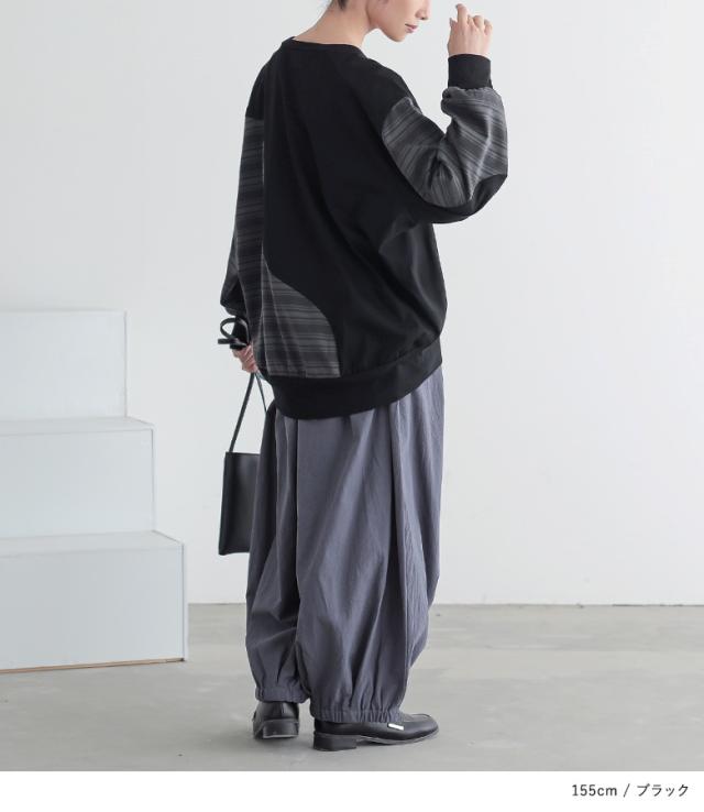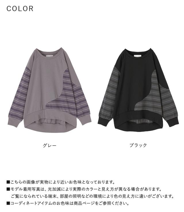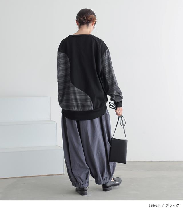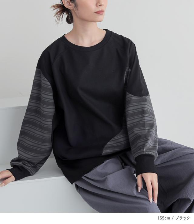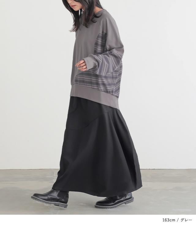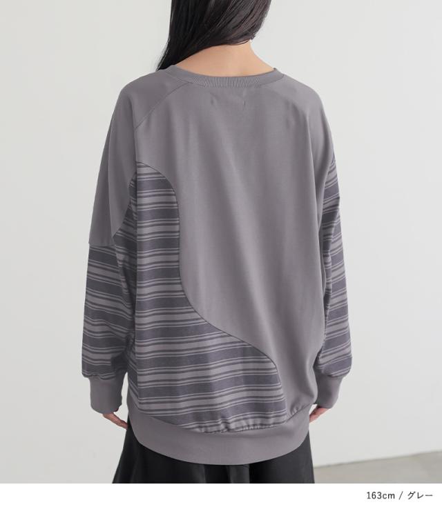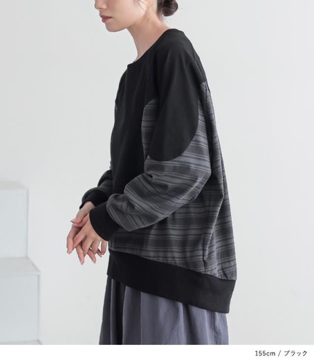 <冬新作>『ボーダー切替カットソー』【メール便不可】【20】[カットソー 長袖 レディース トップス ロンT ボーダー柄 無地 プリントT アシンメトリー アシメ カーブライン リブ 綿混 ゆったり 体型カバー 秋 春]
