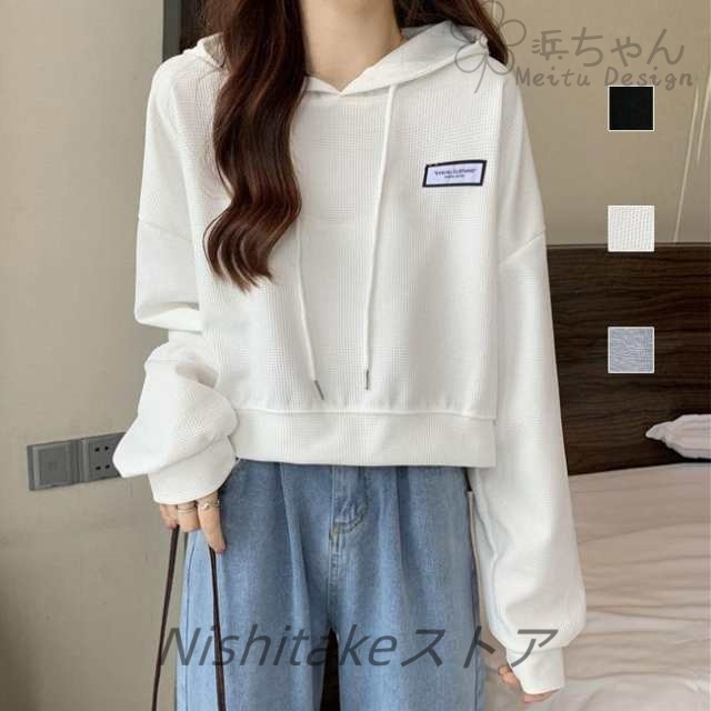 パーカー ショート丈 ゆったり レディースパーカー フード付き シンプル レディース トップス